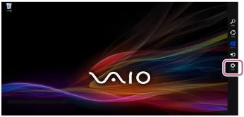 - 画面の右上隅にマウスポインターを合わせて(タッチパネルの場合は画面の右端からスワイプして)、表示されたチャームから[設定]を選択する。