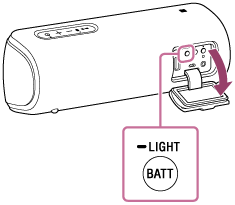 Paina kaiuttimen takana suojuksen sisällä olevaa BATT (akku) -painiketta/