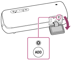 1. اضغط زر ADD (إضافة سماعة) داخل الغطاء في الناحية الخلفية للسماعة لتغيير إعادة إنتاج الصوت.