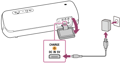 micro-USB кабелін (бірге берілген) динамиктегі DC IN 5V ұясына жалғаңыз, одан кейін екінші ұшын USB АТ адаптеріне жалғаңыз (сатып алуға болады). Содан кейін USB АТ адаптерін АТ розеткасына қосыңыз.