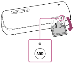 Tryck på ADD (tillägg av högtalare)-knappen på insidan av locket på baksidan av högtalaren.