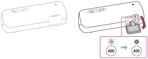 Натисніть кнопку ADD (Додавання динаміка) під кришкою на задньому боці іншого динаміка.