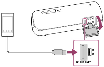 Підключіть пристрій USB, наприклад смартфон або iPhone, до порту DC OUT ONLY (USB) за допомогою кабелю USB (продається окремо).