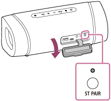 Tryck på ST PAIR (Stereopar)-knappen bakom locket som sitter på baksidan av högtalaren.