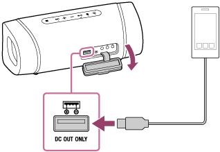 使用USB电缆(市售)将USB设备(如智能手机或iPhone)连接到DC OUT ONLY端口(USB)上。