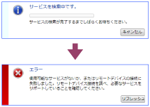 - [サービスを検索中です。]が表示された後、[エラー]と表示された場合:スピーカーは周辺にある他のBLUETOOTH機器と接続されています。接続されている機器を操作して、接続を切断してから、手順2をやり直してください。