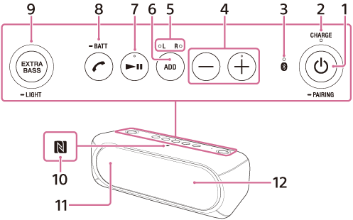 Osvetljenje ugrađeno u zvučnik se uključuje/isključuje kada pritisnete i držite ovo dugme oko 3 sekunde. - Oznaka N