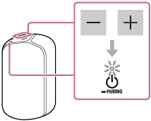 Säädä äänenvoimakkuutta painamalla kaiuttimen – (äänenvoimakkuus) ‑painiketta tai + (äänenvoimakkuus) ‑painiketta tai käyttämällä BLUETOOTH-laitetta.