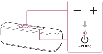 - Adjust the volume by pressing the –/+ (volume) buttons on the speaker or operating the BLUETOOTH mobile phone.