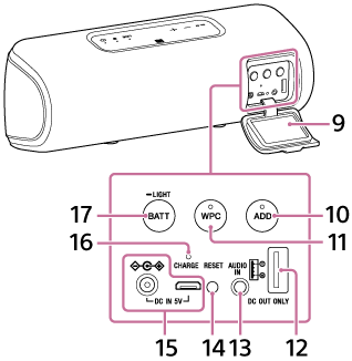 * To charge the speaker, connect a USB AC adaptor to this jack.