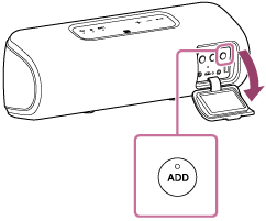 - Press the ADD (Speaker Add) button inside the cap on the rear side of either of the speakers to change the audio reproduction.