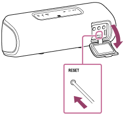 Егер динамикті қосу немесе қосылғанына қарамастан оны пайдалану мүмкін болмаса, артқы жағындағы қақпақты ашып, RESET түймесін істікпен немесе басқа үшкір затпен басыңыз. Динамик қалпына келтіріледі және өшеді.