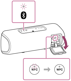 (BLUETOOTH) және WPC (сымсыз Party Chain) индикаторлары жыпылықтайды. Шамамен 6 секундтан кейін дыбыстық сигнал естіледі, содан кейін WPC (сымсыз Party Chain) индикаторы жанады.