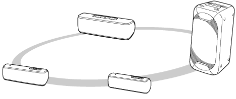 Төмендегі әрекет – SRS-XB41 бірінші динамик ретінде орнатуға арналған үлгі. Пайдаланып отырған құрылғымен берілген пайдалану нұсқауларын қарап, сымсыз Party Chain функциясымен үйлесімді басқа құрылғыларды реттеңіз.
