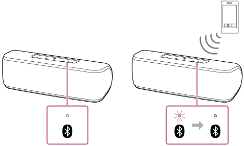 (BLUETOOTH)-indikatoren til høyttaleren slutter å blinke og tennes, er BLUETOOTH-forbindelsen etablert.