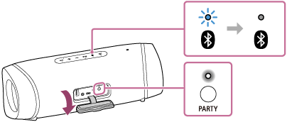 (BLUETOOTH)-indikatoren blinker, og PARTY (Festtilslutning)-indikatoren lyser, og derefter slukker