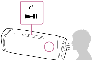 (BLUETOOTH) индикаторы көгілдір түспен жыпылықтап тұрған динамикке жалғаңыз. Хендс-фри қоңырауы барысында төмендегі қадамдар мен әрекеттерде BLUETOOTH мобильді телефонына жалғанып тұрған динамикті қолданыңыз. -