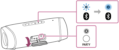 (BLUETOOTH) pisca e o indicador PARTY (Ligação Festa) acende-se e, em seguida, o indicador
