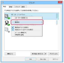 Google Assistantの設定時に付けた、スピーカーの名前が表示されない場合は、「サウンド」画面上を右クリックし、表示されたメニューから[無効なデバイスの表示]を選択してください。その後、次の手順3に進んでください。