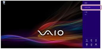 - 画面の右上隅にマウスポインターを合わせて(タッチパネルの場合は画面の右端からスワイプして)、表示されたチャームから[設定]を選択する。