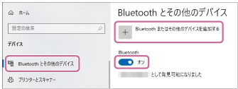 [Bluetoothとその他のデバイス]タブの「Bluetooth」スイッチをクリックしてBLUETOOTH機能をオンにし、[Bluetoothまたはその他のデバイスを追加する]をクリックする。