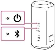 Se desligar o altifalante quando ele estiver ligado a uma tomada de CA através de um transformador de CA USB (disponível no mercado) e se a função de espera do BLUETOOTH estiver ativada, o indicador