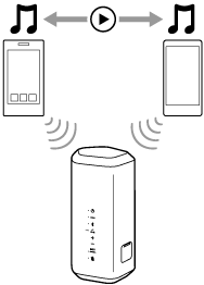 Beroende på situationen kanske du fortfarande hör musik spelas på samma enhet från högtalaren efter att du har manövrerat den andra enheten för att starta uppspelning. Stoppa i så fall uppspelningen på den första. Därefter kan du lyssna på musik som spelas på den andra.