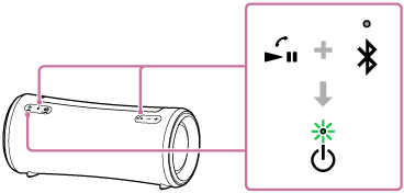 (BLUETOOTH) pisca* a azul.* Se um dispositivo BLUETOOTH anteriormente ligado ao altifalante estiver próximo, o altifalante poderá ligar-se automaticamente ao dispositivo. Nesse caso, o indicador