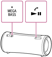 (samtal) och MEGA BASS-knappen tills högtalaren stängs av (5 sekunder eller mer).