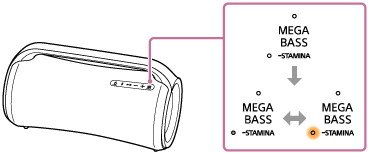 STAMINA-knappen på høyttaleren i ca. 3 sekunder.For å slå av lydeffektinnstillingen til STAMINA-modus trykker du på MEGA BASS/