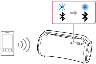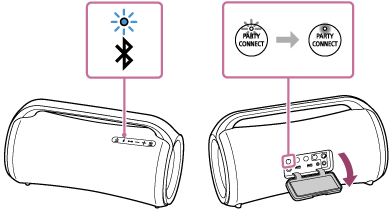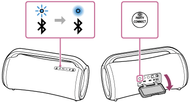 (BLUETOOTH)-indikatoren blinker, og PARTY CONNECT-indikatoren lyser, og så slukker