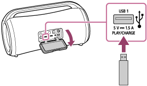 Cât timp un dispozitiv USB este conectat la portul PLAY/CHARGE (USB1), se acordă prioritate ieșirii audio prin portul USB, iar ieșirile audio de la dispozitivul BLUETOOTH și dispozitivul conectat la mufa AUDIO IN sunt dezactivate. În funcție de starea conexiunii prin BLUETOOTH, indicatorul