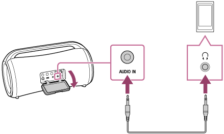 Puteți utiliza difuzorul prin conectarea unui dispozitiv audio portabil etc. la difuzor printr-un cablu audio (disponibil în comerț).