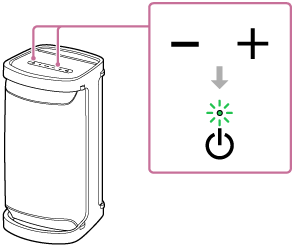 (захранване) светва в зелено.*2 Ако някое BLUETOOTH устройство, което преди е било свързано с тонколоната, се намира близо, възможно е тонколоната да се свърже с устройството автоматично. В такъв случай индикаторът