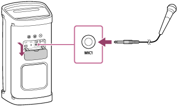 Свържете външен микрофон към жак MIC1 или MIC2/GUITAR на тонколоната.