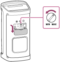 Завъртете копчето MIC ниво или копчето MIC и GUITAR ниво към MIN, за да намалите нивото на силата на звука на микрофона.