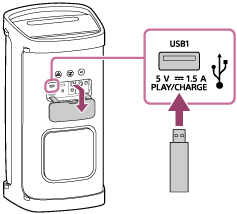 Sluit een USB-apparaat aan op de PLAY/CHARGE-aansluiting (USB1).