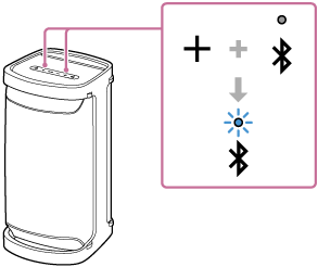 (BLUETOOTH) aanduiding blauw gaat knipperen.Wanneer de instelling wordt veranderd naar "Priority on sound connection" (Prioriteit aan geluidsverbinding), zal de
