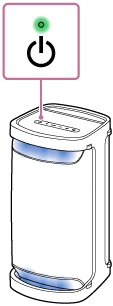 (ström)-indikatorn tänds i grönt.Högtalaren börjar lysa.