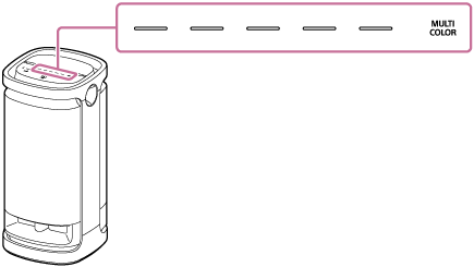 Докосването на MULTI COLOR на високоговорителя нулира избрания от селектора за цвят на осветлението и го привежда към настройката по подразбиране, която кара осветлението на тонколоната да осветява в множество цветове.