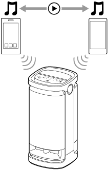 Afhankelijk van de omstandigheden kunt u nog steeds de muziek horen uit de luidspreker van hetzelfde (eerste) apparaat nadat u het tweede apparaat zo hebt bediend dat het muziek begint af te spelen. Stop in een dergelijk geval het afspelen op het eerste apparaat. Vervolgens kunt u luisteren naar de muziek die wordt afgespeeld op het tweede apparaat.