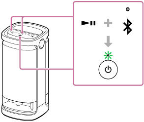 (zasilanie) zamiga dwa razy na zielono.Jeśli głośnik jest połączony z urządzeniami BLUETOOTH, wszystkie połączenia zostaną automatycznie rozłączone i ponownie nawiązane i zostanie zastosowana nowa konfiguracja.