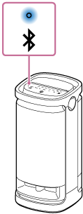 (BLUETOOTH)-indikatorn blinkar långsamt. Men när högtalaren inte har någon information om koppling, som till exempel vid fabriksstandardinställningarna, kopplas kopplingsläget inte ur. Om kopplingsläget kopplas ur innan processen avslutas, upprepa från steg