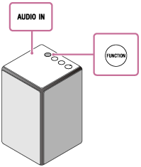 Du kan bruge højttaleren som et almindeligt kabeltilsluttet højttalersystem ved at tilslutte en bærbar lydenhed osv. ved hjælp af et almindeligt tilgængeligt lydkabel (med stereoministik).