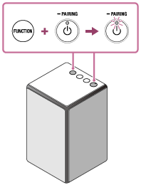 PAIRING og knappen FUNCTION samtidigt, mens højttaleren er tændt. Når indikatoren slukker, deaktiveres standby for BLUETOOTH/netværk, og højttaleren skifter til standby.