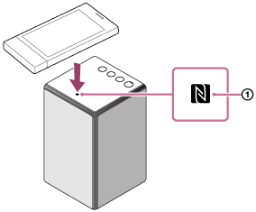 - Si votre smartphone est compatible NFC, activez la fonction NFC et déverrouillez son écran. Mettez ensuite le smartphone en contact avec le repère N-Mark de l’enceinte. Si votre smartphone n’est pas compatible NFC, passez à l’étape