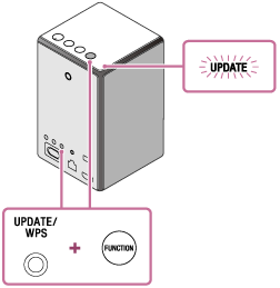 - Le nombre de clignotements du témoin UPDATE varie au fil du déroulement de la mise à jour. Le témoin UPDATE clignote d’abord quatre fois, puis réduit le nombre de clignotements jusqu’à s’éteindre quand la mise à jour est terminée. Ne mettez pas l’enceinte hors tension pendant la mise à jour.