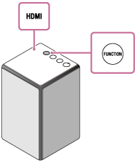 - Tik meermaals op de knop FUNCTION tot de indicator HDMI begint te branden.