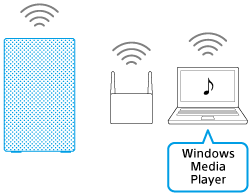 Använd Windows Media Player på din dator för att lyssna på musik från högtalaren via ett Wi-Fi-nätverk.