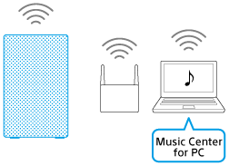Anslut först högtalaren till ett Wi-Fi-nätverk med SongPal (Smartphone)/(iPhone/ iPod touch). Ställ därefter in din dator för manövrering via en kontroll t.ex. en smartphone/iPhone (Windows 8.1), lyssna sedan på musik från högtalaren via ett Wi-Fi-nätverk.